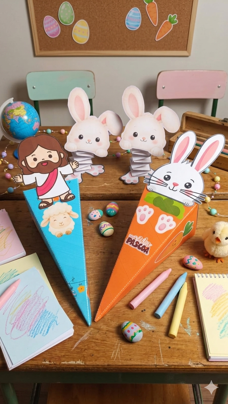 🌟*Caixa Cone “Jesus & Cordeirinho*”: Para lembrar o verdadeiro sentido da Páscoa com muita fofura.
